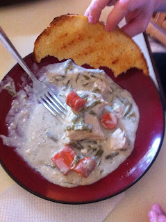 Hello my hungry readers! So today's Wednesday recipe is actually one I just made up and prayed would taste good and it did. I was in a hurry so I had to throw a bunch of stuff into the crock pot and get stuff done for the wedding. I put two smaller frozen chicken breasts in the crock pot poured half of a can of cream of mushroom soup over the top, cut up two carrots and a half a bag of frozen green beans in the crock pot with about a cup and a half of chicken broth. After I put all that in the crock pot I poured the rest of the cream of mushroom soup on the top. I cooked it on high for four hours.